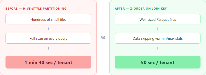 | Metric | Before (Partitioned) | After (Z-Ordered) |